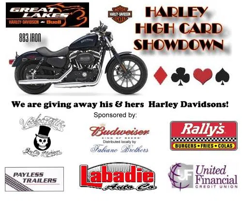 Z93 is giving one man & one woman the chance to win a brand new Harley Davidson motorcycle plus the taxes covered by United Financial Credit Union! Keep listening to Z93 for your chance to make it through as the correct caller when we tell you to. You will be qualified to join us on May 16th at 6pm at The Great Hall in Midland for the Harley High Card Showdown, where one man & one woman will each win a motorcycle! Plus, look for us throughout the Tri-Cities with the bikes inside the Payless Trayler, pulled by the Labadie Truck! We will have your chance to qualify during our live broadcast!