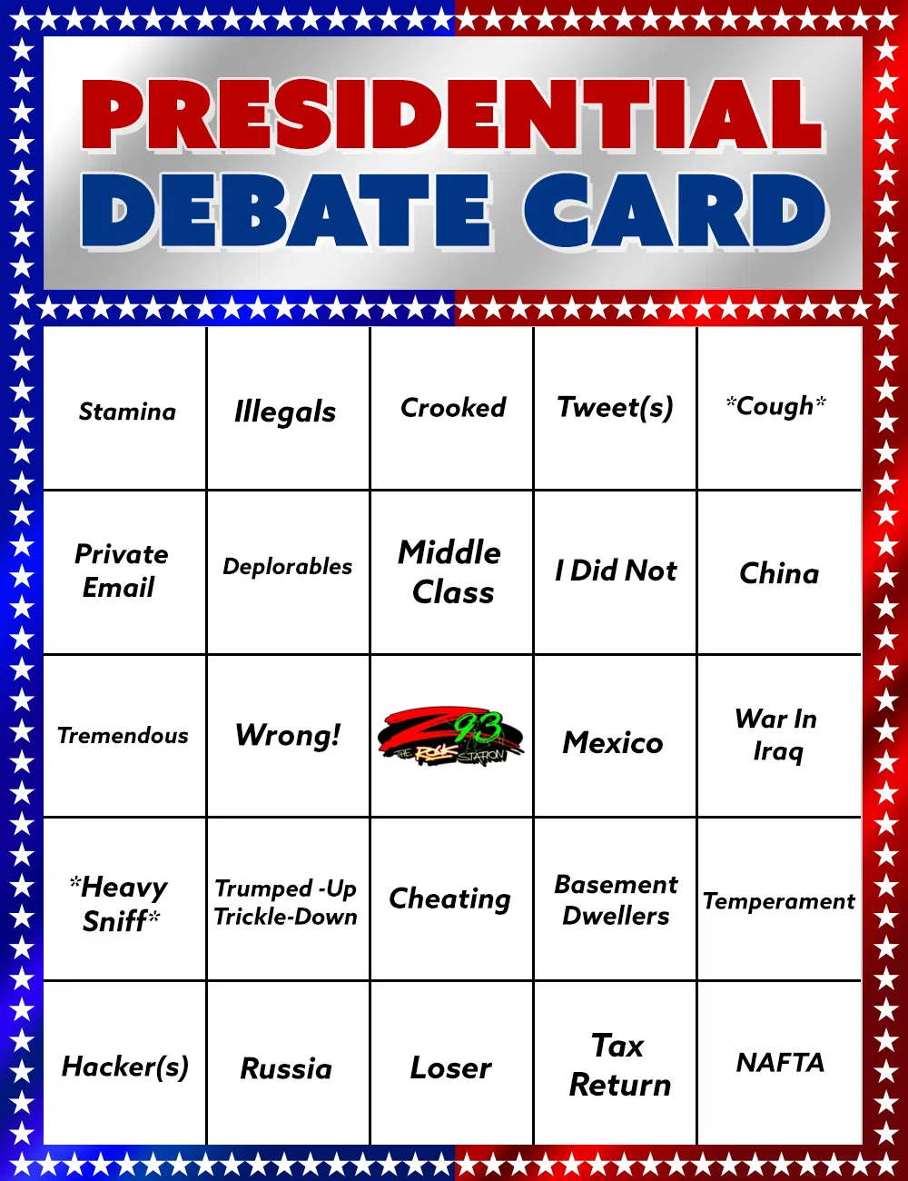Print out the Z93 Presidential Debate BINGO card and play this Sunday!