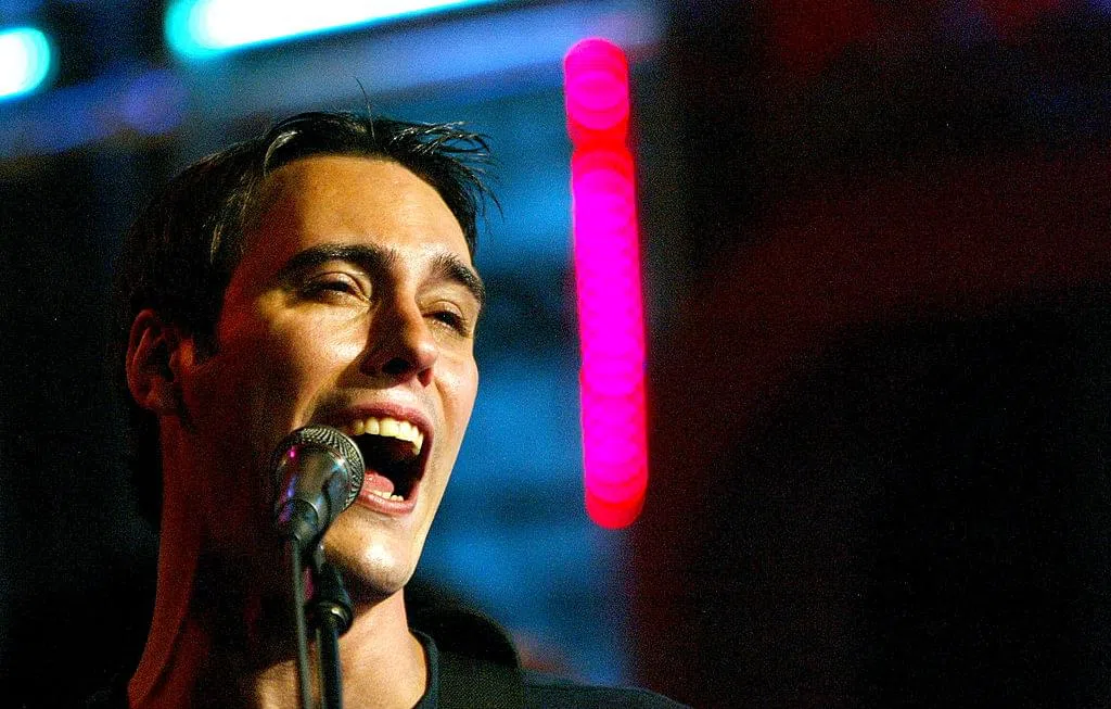 NEW YORK – JULY 21: Ben Burnley of Breaking Benjamin performs live on FUSE TV’s Daily Download show July 21, 2004 in New York City. (Photo by Paul Hawthorne/Getty Images)Breaking Benjamin ...